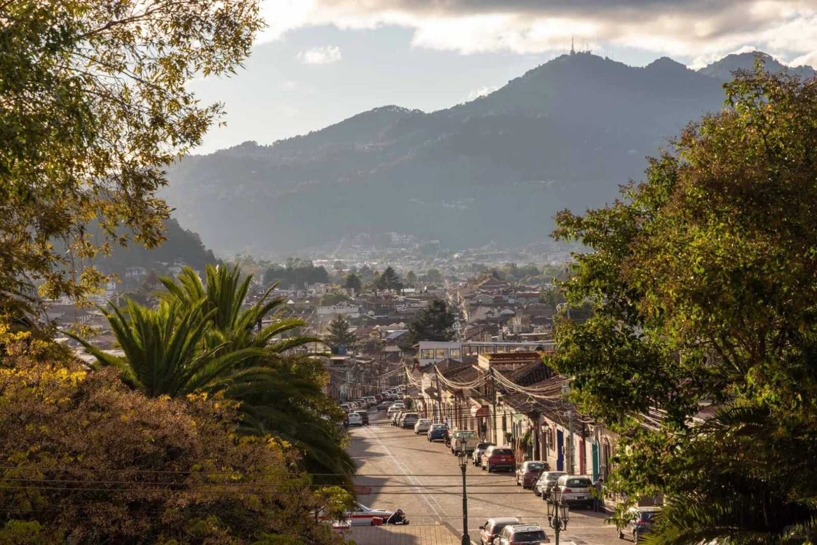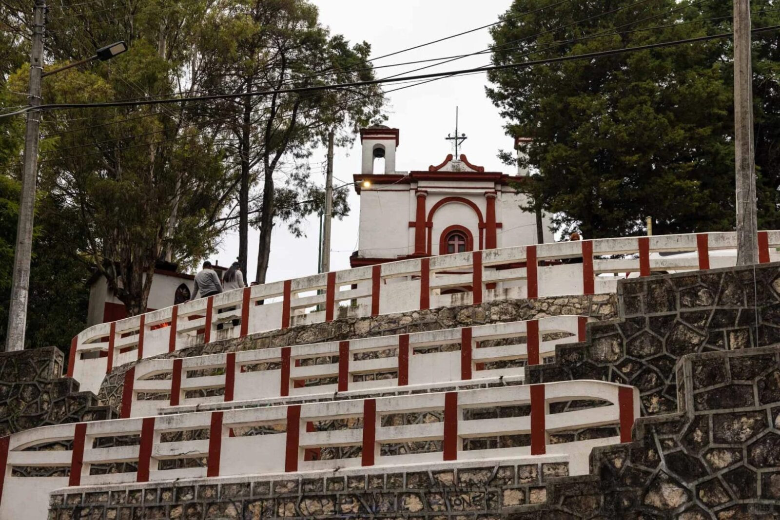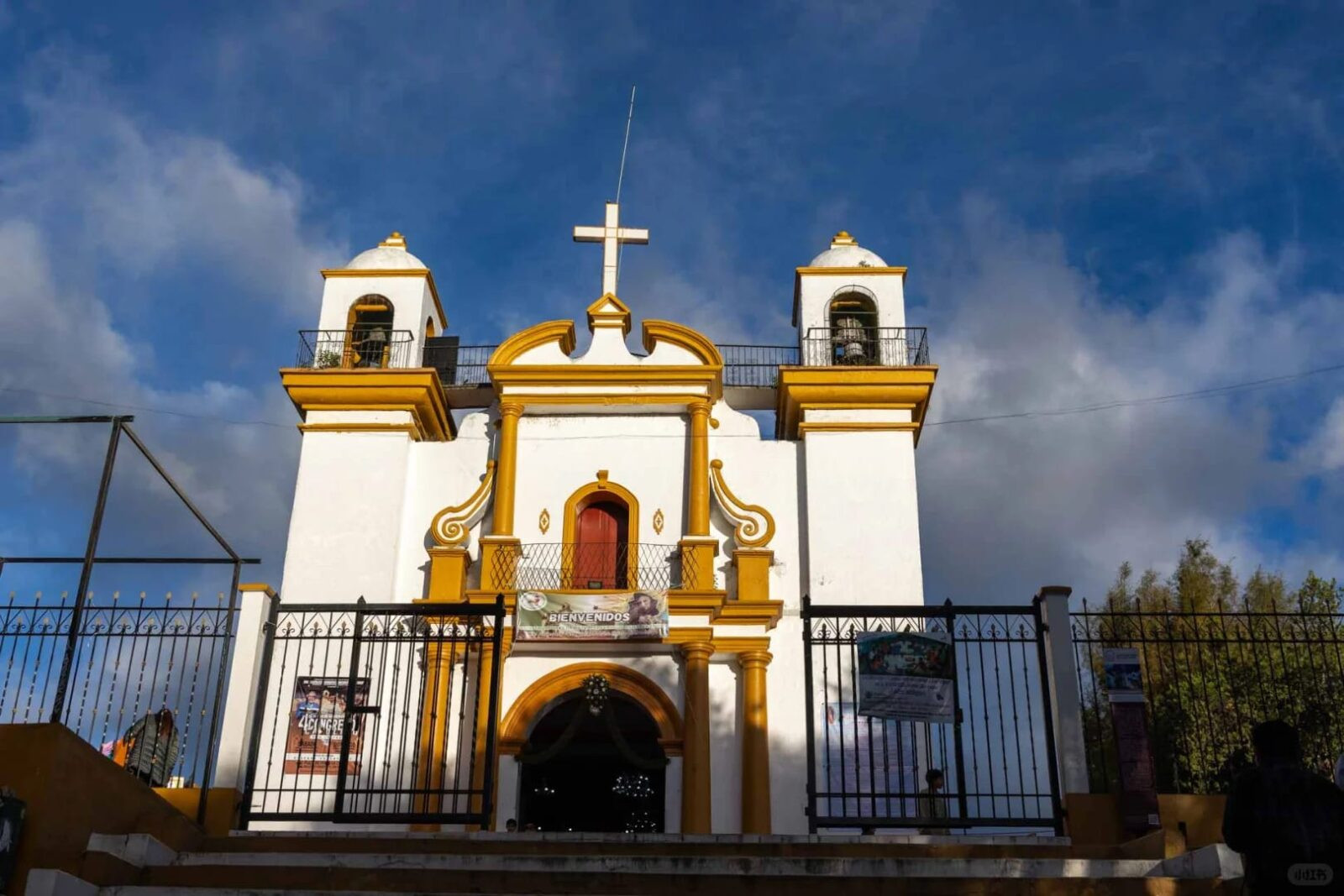 在圣克里斯托瓦尔德拉斯卡萨斯,我们意外落脚于一间带小院的青旅。院落简朴却惬意,树荫下透着凉意,很安静。队友们最乐在其中的是那间开放厨房,能随心所欲地做顿热腾腾的饭菜,填补旅途的饥饿。多座色彩斑斓的教堂是小镇一大特色。我们拆分成两天行程,分别爬上镇子东西两端的制高点教堂,从那里一览小镇全貌。