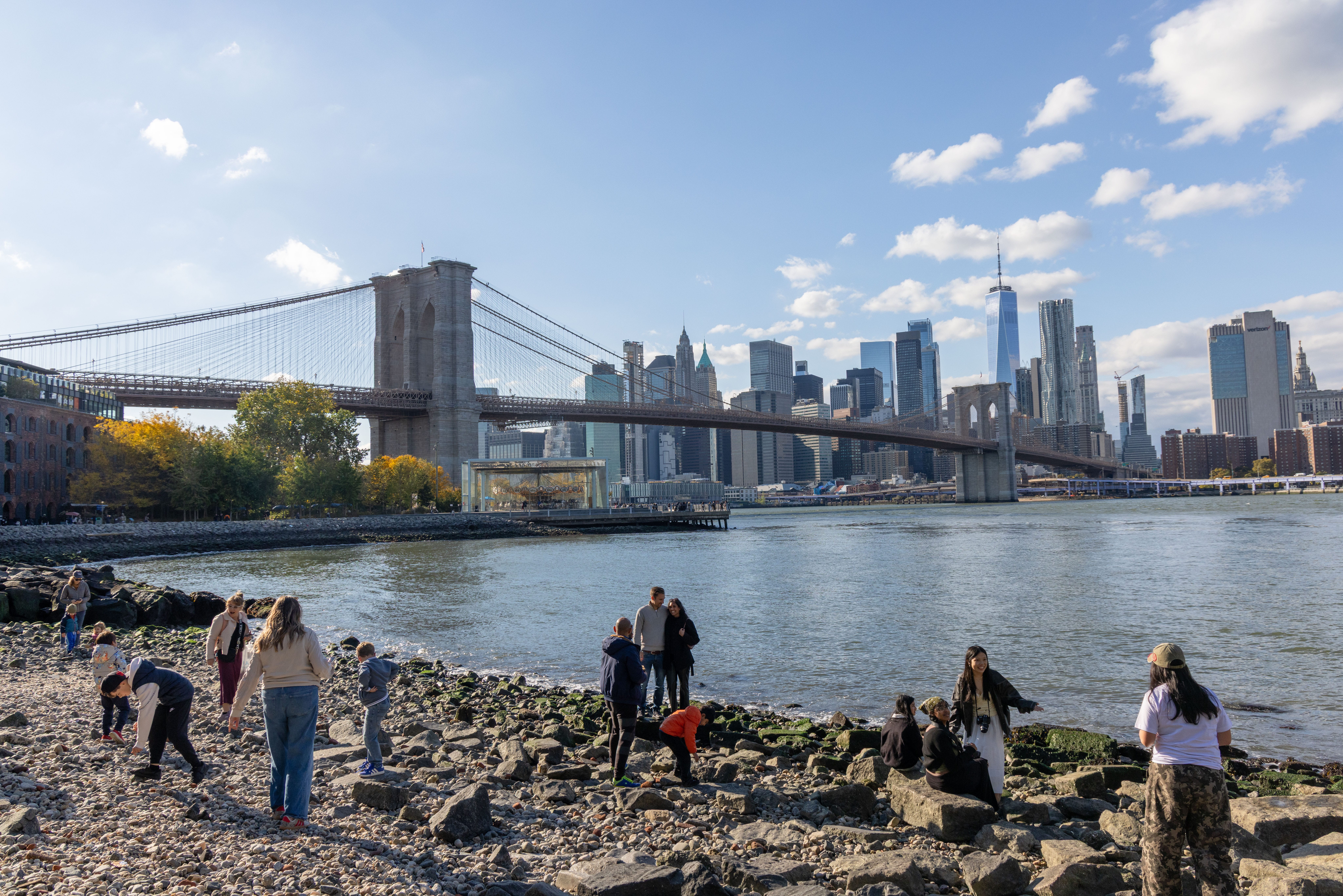 布鲁克林大桥公园河畔Pebble Beach是欣赏大桥和曼哈顿景色的观景秘籍。在这里看景吹风,可以坐很久。